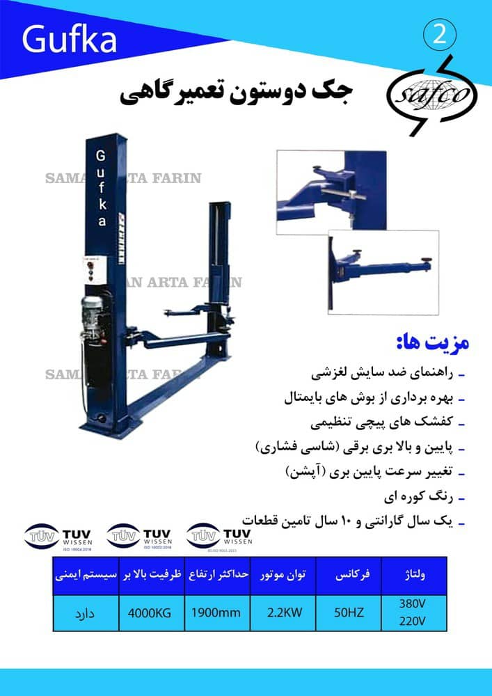 مشخصات محصول: جک دو ستون تعمیرگاهی ۴ تن (اتصال از پایین)